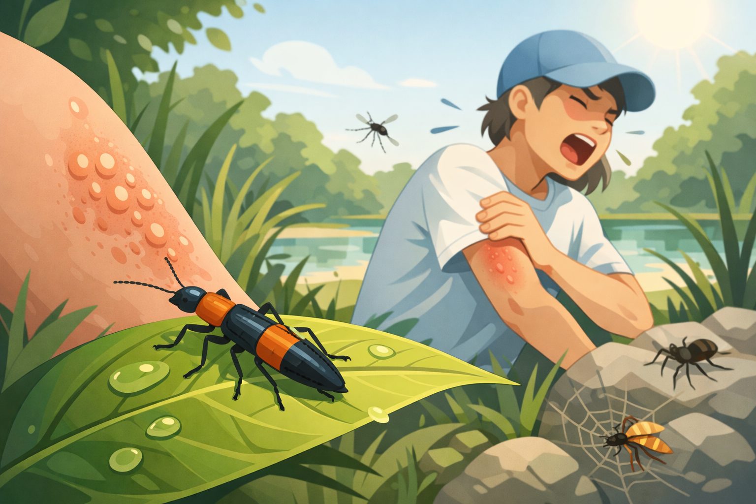 この記事では、特に被害が多い「やけど虫(アオバアリガタハネカクシ)」の症状・対処法と、一般的な虫刺され・やけどの家庭での治療法・予防策を、わかりやすく解説します。
